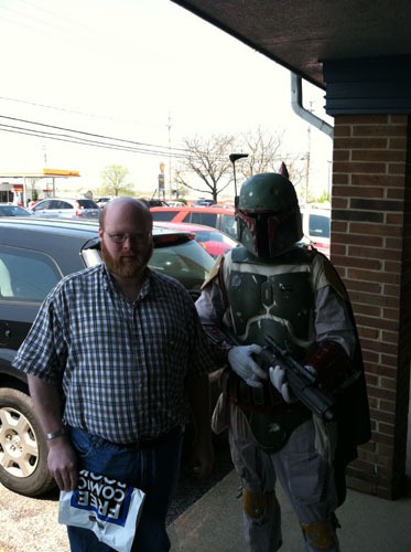 Next we headed north, to my old stomping grounds growing up, and hit Comic Heaven. There we found a handful of books on sale, though the primary draw was an artist and several costumed characters–“Super-Chimp,” a couple of Storm Troopers, and Boba Fett. Alas, no Darth Vader this year.