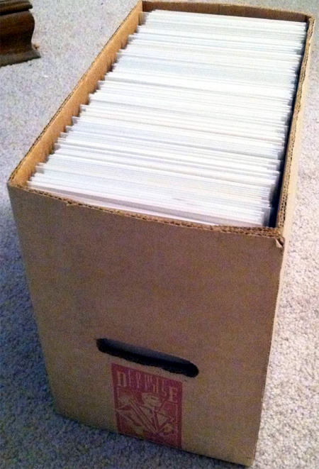 And while I’d figured I’d be juggling a couple large paper bags, the store owner (as usual) makes an awesome deal even sweeter, giving me an old/used shortbox to lug the comics home in: