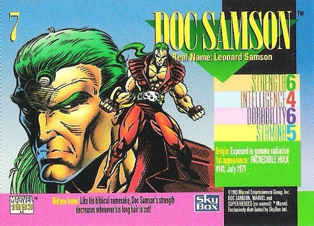 Filed under: Marvel Series IV Revisited, The '90s Revisited | Tagged: 1993, Deadzone, Deathlok, Doc Samson, hulk, MARVEL, Marvel Trading Cards, Marvel Universe, Marvel Universe 1993, Marvel Universe Series 4, Marvel Universe Series IV, Moon Knight, Moses Magnum, Siege, Silver Sable, Skybox, trading cards, Wild Pack |