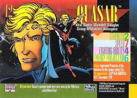 While these would not have been my favorite characters back in ’93 when these cards came out, looking back on them now 20 years later, these are indeed some of my favorite Marvel characters, especially this version of them!