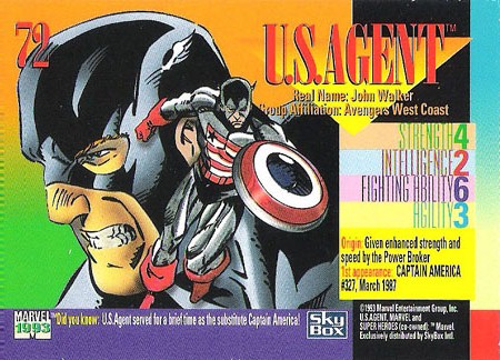 Filed under: Marvel Series IV Revisited, The '90s Revisited | Tagged: 1993, Iron Man, MARVEL, Marvel Trading Cards, Marvel Universe, Marvel Universe 1993, Marvel Universe Series 4, Marvel Universe Series IV, Namor, Scarlet Witch, Skybox, Spider-Woman, Splice, Tiger Shark, trading cards, U.S. Agent, War Machine, Wonder Man |
