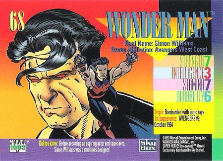 Filed under: Marvel Series IV Revisited, The '90s Revisited | Tagged: 1993, Iron Man, MARVEL, Marvel Trading Cards, Marvel Universe, Marvel Universe 1993, Marvel Universe Series 4, Marvel Universe Series IV, Namor, Scarlet Witch, Skybox, Spider-Woman, Splice, Tiger Shark, trading cards, U.S. Agent, War Machine, Wonder Man |