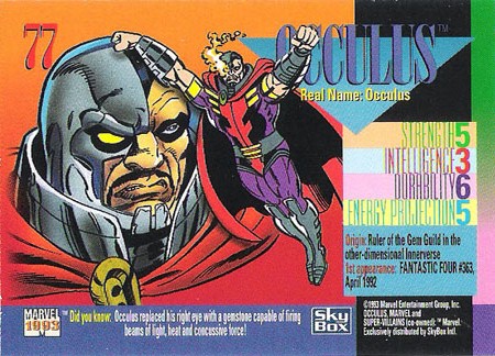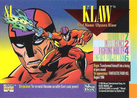 Filed under: Marvel Series IV Revisited, The '90s Revisited | Tagged: 1993, Dr. Doom, human torch, invisible woman, Klaw, Lyja, MARVEL, Marvel Trading Cards, Marvel Universe, Marvel Universe 1993, Marvel Universe Series 4, Marvel Universe Series IV, Molecule Man, mr. fantastic, Occulus, Skybox, thing, trading cards |