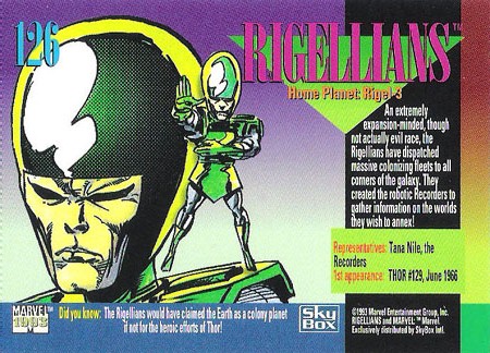 Filed under: Marvel Series IV Revisited, The '90s Revisited | Tagged: 1993, Asgardians, Badoon, Brood, Kree, MARVEL, Marvel Trading Cards, Marvel Universe, Marvel Universe 1993, Marvel Universe Series 4, Marvel Universe Series IV, Ovoids, Ragellians, Shi'ar, Skrulls, Skybox, Titans, trading cards |