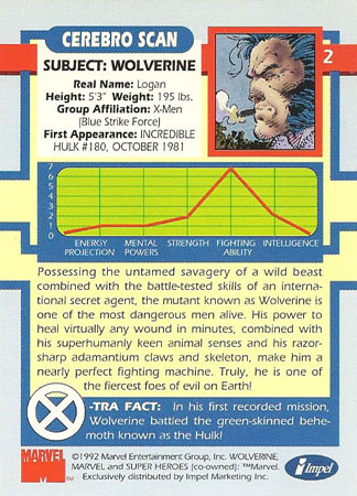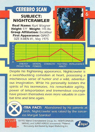 It’s also a bit odd to consider the publisher of these cards–Impel–as I am almost certain they aren’t even around anymore, and that they passed the torch (so to speak) for the next series of X-Men cards that was published in 1993.