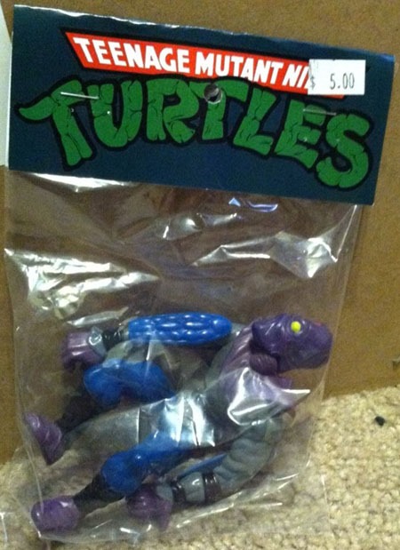 I was rather thrilled to see some vintage TMNT toys, and several hanging in “home-made” packaging.