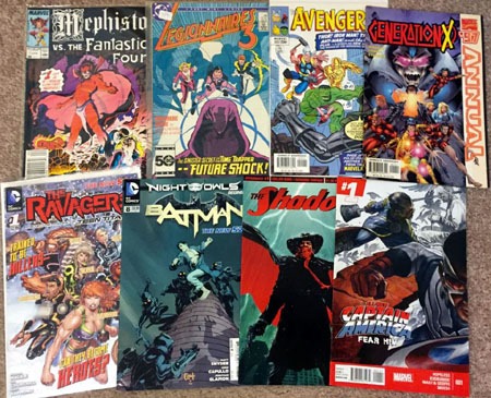 I found myself working toward an ‘even number’ for my mental math of my stack, so grabbed a couple random-ish issues. One of the store workers was sorting through a small box of comics and tossed some more “recent” releases on the quarter bins…functionally giving me first crack at ’em, so I snagged the bottom row above.