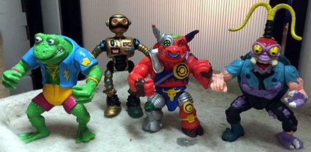 A friend visited over the weekend, and while we were out and about, we stopped in at a vintage toys store in the Cleveland area–Big Fun Toys. Loads of great toys new and old to see, plenty of classic games and books, too. While I have my eye on some figures that were in a display case and thus more expensive…I picked up these four TMNT figures at the excellent price of $3 each or 4/$10! I was going to get three, but on learning of the 4/$10, I went back to the bin and grabbed the Fugitoid figure! I’d had a Fugitoid back in the day, but it disappeared over the years, so this one will (for now) serve as replacement. Genghis Frog, Groundchuck, and Scumbug are new-to-me characters that I’d never owned.