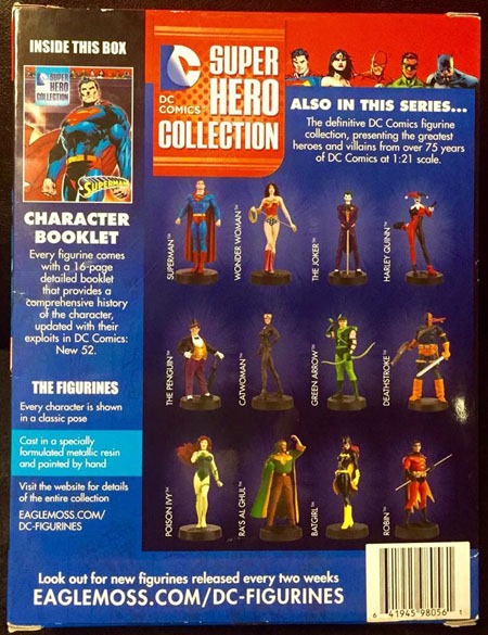 This is from the same series as the Robin figurine I’d ordered online, so the back is almost entirely the same, just a changed image for the character booklet, and this one lacks the extraneous sticker of the online retailer for the Robin figure.