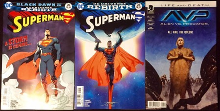 ALSO flying radically in the face of my usual, with its presence and price and looking like such a great art piece, I actually snagged a copy of the Superman variant along with the main cover. This variant will be getting framed and hung, though, to be on display…not gathering dust somewhere merely existing in an abyss of longboxes!
