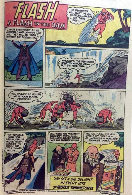 And here is one of those classic Hostess ads…just a single-page "strip" of a hero overcoming a villain with the help of a Hostess-brand treat. In this case, obviously–the Flash.