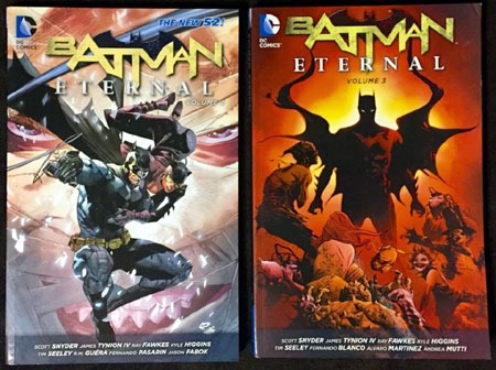Meanwhile, Half-Price Books was doing a 20% off sale, and I made it to a location I hadn’t been to in a couple months, and after being horrified at a $250 pricetag on an X-Men hardcover, and outrageous extreme-prices on a couple other hardcovers, I opted to "complete" my Batman Eternal paperbacks collection. I already had vol. 1, and snagged vols. 2-3. Now I’m just missing Batman and Robin Eternal vol. 2 from the 5-volume run of the two series!