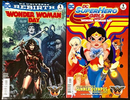I also snagged the Wonder Woman Day issues–a reprint of the first issue of the Rebirth run, and a chapter of SuperHero Girls: Summer Olympus. (Then on Saturday, I also snagged the cardboard tiara and bracers for a friend’s daughter from Comic Heaven along with an extra copy of the comics to go with ’em.)