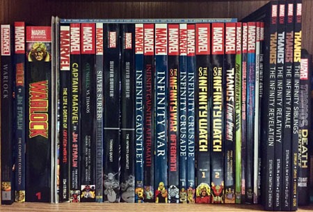 I suppose it’s more of a "Jim Starlin shelf," though there’s a bit of stuff in there that I don’t think he was on–namely the Avengers vs. Thanos and Thanos: Cosmic Powers (though I could be wrong–memory is fickle). And of course the novel by Stuart Moore.