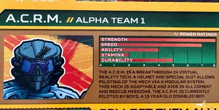 While the A.C.R.M. profile indicates it’s a singular unit piloted by a single specific character…I see it as something cool for a "good guy army-builder," which seems a bit of a rarity to me.