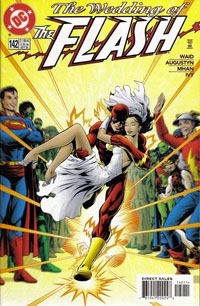 We open on Wally dealing with Kobra and his crew, and find he’s got a very personal stake in dealing with the current situation: the terrorists are quite inconsiderate, after all, attacking on his wedding day. Linda and Wally put the last-second finishing touches on wedding plans as Linda’s family arrives. While things get into motion for the wedding, Wally can’t quite shake the feeling that something’s wrong or forgotten. The Justice League arrives, and there’s still no villain attack to disrupt things…as Wally and Linda get a moment to confirm they’re going through with the wedding. As the couple prepares to deliver their wedding vows, Wally realizes exactly what he’s forgotten: writing his. Of course, he doesn’t need to write them–he just reflects quickly on their time together, what they’ve been through–and he’s good. As he slips the ring onto Linda’s finger, there’s a flash of light, and he’s alone with no recollection of Linda’s existence nor that they were at the altar to be wed…while a mysterious figure looks on as Linda screams for help.