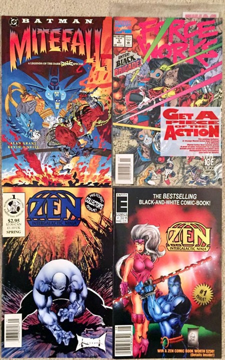 The Mitefall is a prestige-format issue, Force Works is bagged with some inserts including an animation cell, and the Zen issues of thicker covers with foiling for the logo.