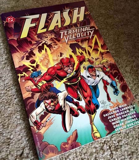 I finally–at the far back of the place–found a box of half-off books that (shockingly) actually included DC books, and found the Flash: Terminal Velocity tpb. The dealer rounded down, giving it to me for $6…and after paying, thanking him, and heading away, decided on the spot to cut my “losses” and get the heck out. $5 admission plus $6 meant I functionally paid $11 for an out-of-print, cover-price-$13 Flash tpb of a story I’ve been unable to find the singles for and been interested in reading–so while the experience was extremely underwhelming, it was (in the end) mostly worth my while.