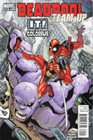 For whatever reason, and however he does it, Deadpool’s been hired to captain a sub taking the niece of the man who controls “It! The Living Colossus,” who has been in a coma since a long-lost battle with Dr. Doom. The niece thinks that she can revive her uncle by getting him into close proximity with the Colossus he used to control. While the logic is iffy, the results can’t be argued with and–when things invariably go bad with the sub, Deadpool and his ‘client’ find an unexpected result of the uncle’s body being present so close to the statue his mind once controlled.