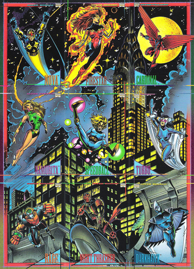 But back in 1993? These characters were virtual unknowns to me, outside of their appearance on these cards. It somewhat helps for me to realize that these characters were–in some cases–quite new at the time, and interesting to see who has lasted or otherwise gone on to notoriety since, and which ones (Cardinal, Turbo, Rage) I don’t recall ever even hearing of.