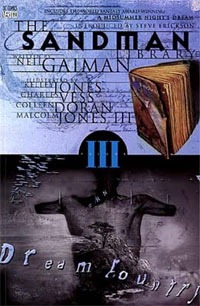 sandmanvol3dreamcountryFlash-forward a couple years, to the summer of 2001. I was working as a camp counselor in Michigan, and found out one of the other guys working there was a comics fan…though he had a preference for the non-superhero stuff. One of his favorites was Hellblazer, and through that summer he loaned me all the Hellblazer he had with him (thoroughly getting me hooked on the series, but that’s another post entirely). He’d also told me about this other series, The Sandman, and highly recommended it. Amidst the various issues of Hellblazer I read that summer, I saw plenty of house ads for Sandman stuff, which kept it on my “radar.”