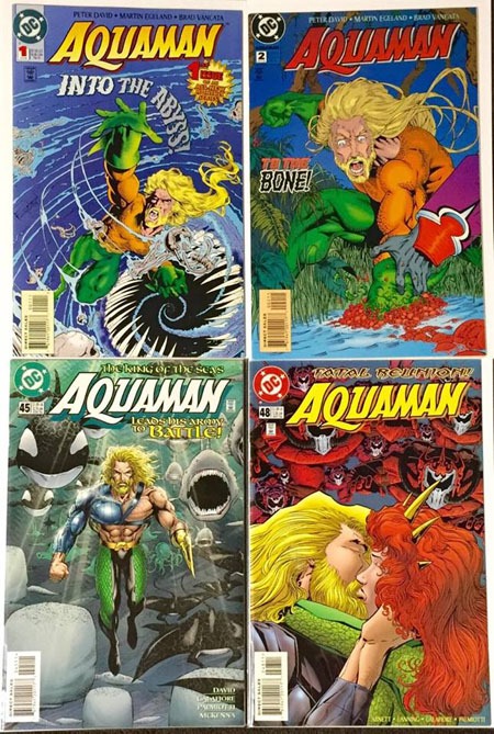 For the price of a single Marvel comic, I “upgraded” Aquaman #1 from a beat up copy to a nice copy…and filled out my Peter David run to now having a full run of #0 & 1-48! This includes “the” key issue–#2–where Arthur loses the hand…and I danced a fine line taking these photos between not actually sitting to read #s 1-3 and 0 and skimming through #2 and #0 in particular!  I remember when this series started, as well as noting Aquaman’s appearance in Zero Hour itself (see my 2016 Zero Hour Revisited posts), but had never gotten into/kept up with the series, to my later regret. Gladly, with ’90s comics being so (financially) cheap, I’ve embraced being able to catch up at a fraction of even the original cover price cost!