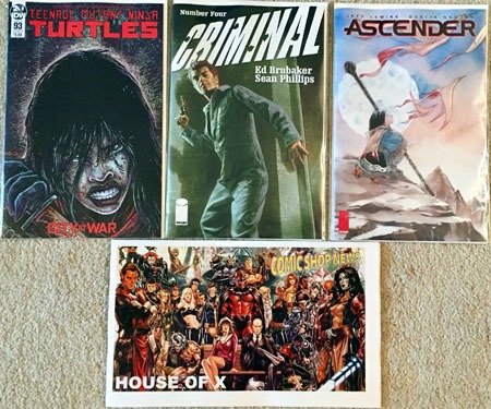 TMNT #93 kicks off City at War and begins the final run-up to #100. Criminal–basically, anything from Brubaker and Phillips–is always a treat. And for the heckuvit, I decided to "try" Ascender #1…though who knows when/if I’ll get to reading the darned thing.