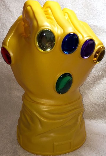 Sadly, I only later realized that whoever OKed the Gauntlet screwed up–THE Infinity Gauntlet was on Thanos’ LEFT hand…while this bank is clearly a right-handed piece. The Thanos bust has it correct.