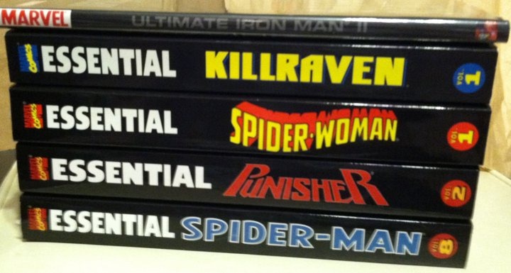 • For a mere $8 (2 new single-Marvel issues) picked up good condition copies of Essential Killraven vol. 1, Spider-Woman vol. 1, Punisher vol. 2, and Amazing Spider-Man vol. 8. (that’s $8 TOTAL, if you were wondering. $2/each).
