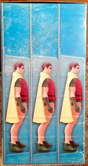 …both sides of the box. The "figure"’s pose is a bit awkward (more on that below). But it’s definitely a nifty element to the packaging…including the "distressed box" look adding to the sense of age to this, like it’s a figure or figures "found" somewhere and actually some vintage object.