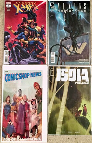 I snagged this free Isola Prologue issue cuz hey…"free." And we have the weekly Comic Shop News, this one focusing on Age of X-Man: Alpha…something playing on nostalgia (1995’s X-Men: Alpha). If Marvel does some sort of omnibus for the event, has a single-volume of Uncanny X-Men 1-10 and such and I can get then for a decent price…I might snag ’em. Otherwise I’ll wait for conventions later in the year and see if the singles can be had for half price for standard covers…if reviews and word of mouth bear ’em out as worthwhile.