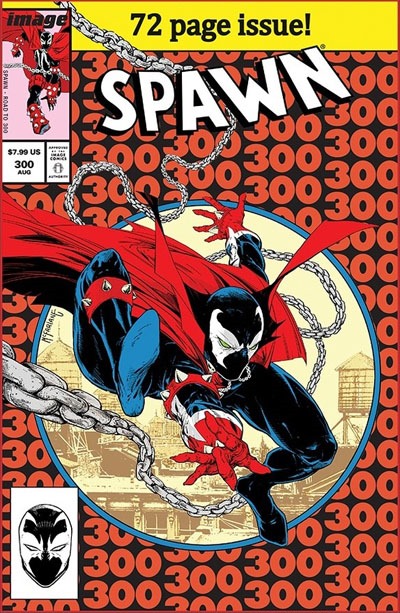 Here’s the new comic side-by-side with an original–the Medieval Spawn, though. Just to show the trade-dress and such.