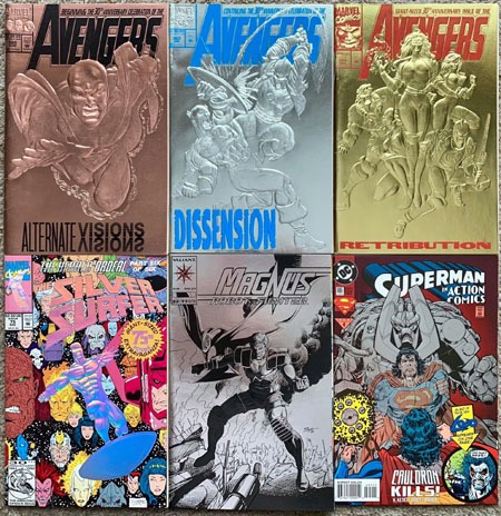 If you grew up in the ’90s and think back…you may realize that NOT included here are two key Superman issues: the infamous Superman #75 black-bagged “death issue,” and Adventures of Superman #500 and its white-bagged edition. Those are topics for elsewhere and elsewhen!