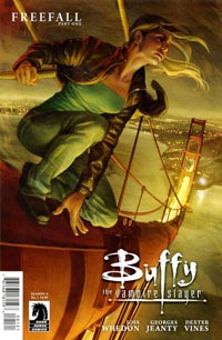 This certainly didn’t open quite the way I would have expected…even though I don’t even know what I did expect. I got into Buffy early this year when I re-watched the first episode of the tv series, and then spent the next 14 weeks in a dash through all 7 seasons. I experienced the first half of “Season Eight” via the motion comic Blu-Ray edition, and then the next couple TPBs from the local library. I read the final issue, having picked that up, so I have some context for this issue. Things open with Buffy going about life with new roommates and unsure of things with her friends, given the events that ended Season Eight. She then encounters a new horror this issue that seems so out of place that I’m not even sure if I can take it seriously–it’s like something from some comic strip rather than the next chapter of the Buffy story. The art fits what I’ve gotten used to seeing for this incarnation of the comics, and the writing’s on par as well. Nothing fantastic, nothing horrible. As a new “season,” this does a good job introducing new characters and old as well as a little about what they’re all about. But also as the start of a new season, there isn’t a whole lot to go on quite yet. Where a tv season goes a few months, I believe this is slated to run a couple years, so there’s plenty of time for things to develop. If you enjoyed Season Eight chances are you’ll enjoy this, for a continuation of that story, and of the Buffy saga on the whole (remember, this is set in the same continuity as the tv series). If you’re not a Buffy fan, you probably won’t care for this, though if you’re willing to go old-school and jump in while figuring “everything” out later, this is about as good a jump on point as anything. And the cover I went with…that’d be an AWESOME poster. (8.5/10)