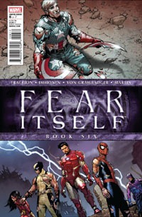 I don’t know why I’ve stuck with this title/event. It really doesn’t seem to hold the “feel” that I would expect something called Fear Itself to have. The events of the story seem far too all-reaching for any normalcy to come back out of it. This seems more like the setting for some alternate universe, as the event that makes the other universe different from the main Marvel universe. There’s something that’s gotten to seem so generic about this…and yet, 6 issues in I’ll get the next issue just to see how this story “ends,” though I gather from news I’ve seen around online that this is yet another major event whose ending won’t be a true ending so much as something that’s just going to lead into the next few months’ “status quo” of Marvel stories. If you’re not already following this event or at least this core title, this isn’t for you. If you are…well, nothing I say’s really gonna change your mind. The art’s quite good, and though I don’t care for the story, the writing isn’t all that bad in itself: it just doesn’t work for me as an overarching story. Not particularly recommended. (4/10)