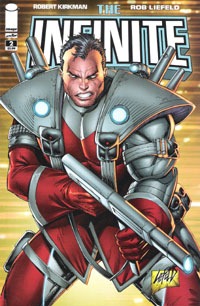 Above I commented about Super Dinosaur that it’s worth checking out of you trust Kirkman‘s writing…and I hold to that here. Of course, the writing is really overshadowed by the visuals. Looking at this cover, I see Cable…with bigger shoulder pads, smaller guns, younger and without the cybernetic/glowey eye-thing going on. For the interior, I had to keep reminding myself one character is NOT actually the Heroes Reborn Steve Rogers (Captain America) and another character made me think immediately of Gladiator from the X-Men comics. There’s a lot of time-travel stuff involved here, and it essentially seems like the main time-traveler is one of a two-man team–either he or his partner would have gone back, in order to try to prevent the future (their present) from happening. All they had to go on was some basic information, and in the past (now the present) the younger versions of these soldiers are being trained to fight against the coming darkness. It’s rather cliche and very ’90s-esque…but darnit, there’s something that just makes this work…maybe it’s a trainwreck waiting to happen and I’m waiting for that, but I picked this up after getting the first issue, and I’m pretty sure I’ll be back for #3. If you’re a Kirkman fan and can “handle” Liefeld‘s art, this is worth checking out…surely Kirkman‘s got something in the works for this. If you’re a Liefeld fan, can’t go wrong with that matched with Kirkman‘s writing. And heck…if you’re a Cable fan, this even reads a little bit like an alternate universe Cable story, so you could check this out and skip the last 18 years of Marvel‘s continuity. (6/10)