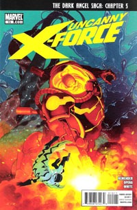 I swear this title is shipping far too frequently of late, especially as I don’t really even recall any feeling of it being “late” at any point. The Dark Angel Saga continues, this is chapter 5. Archangel–through Genocide–has blown up a small town of a few thousand residents, and then with The World and the Life Seed, created a pocket of rapid evolution that goes from a scorched-earth blank-slate to a relatively modern-ish culture that evolved 100+ million years in a few hours. Provided all goes well, Archangel intends to do the same to the entire planet, and it’s left to X-Force to stop this from happening. Though this is indeed called The Dark Angel Saga, it seems to be taking Warren down a dark path whose implications absolutely will not be able to be ignored in general X-continuity…and it seems strange to see the character taken to these depths. The art on this book continues to be good stuff, and very stylistic, marking this as a much different side to the X-corner of the Marvel Universe. I’m not sure how long this arc is, though the next chapter–if this fits the 6-issue pattern–should conclude things. After a couple of 4-issue arcs, I wonder, though. If you’re following this title anyway, well worth picking up. Otherwise, you’re best off waiting for the next arc at least. (7.5/10)